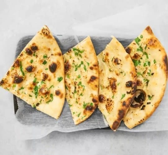 A soft, fluffy flatbread infused with finely chopped garlic and baked to a golden-brown perfection. The aromatic garlic adds a bold flavor, perfectly complementing the warm, pillowy texture of the naan. Garlic Naan is an ideal accompaniment to curries or dips, bringing an extra layer of savory taste to any meal.